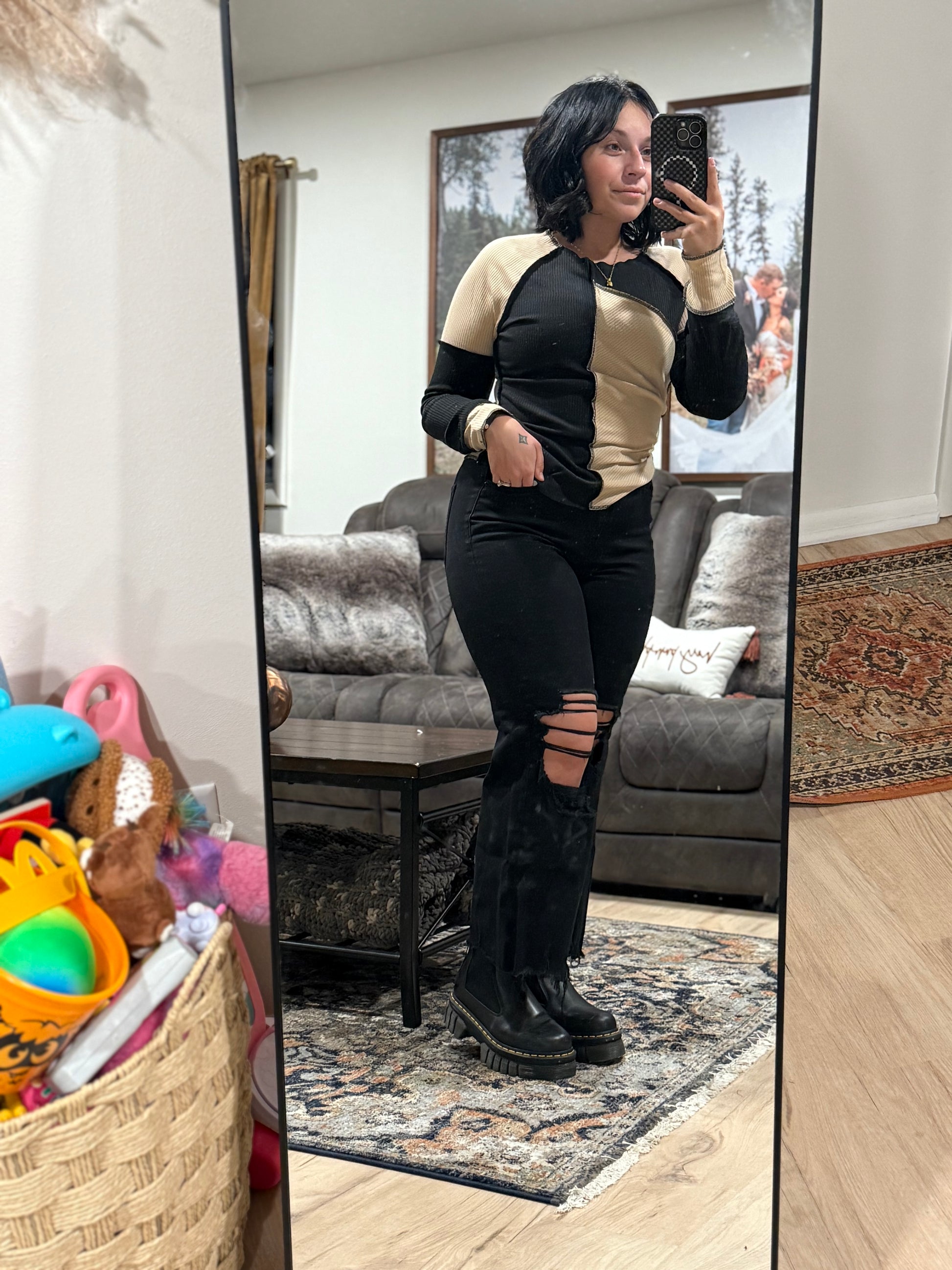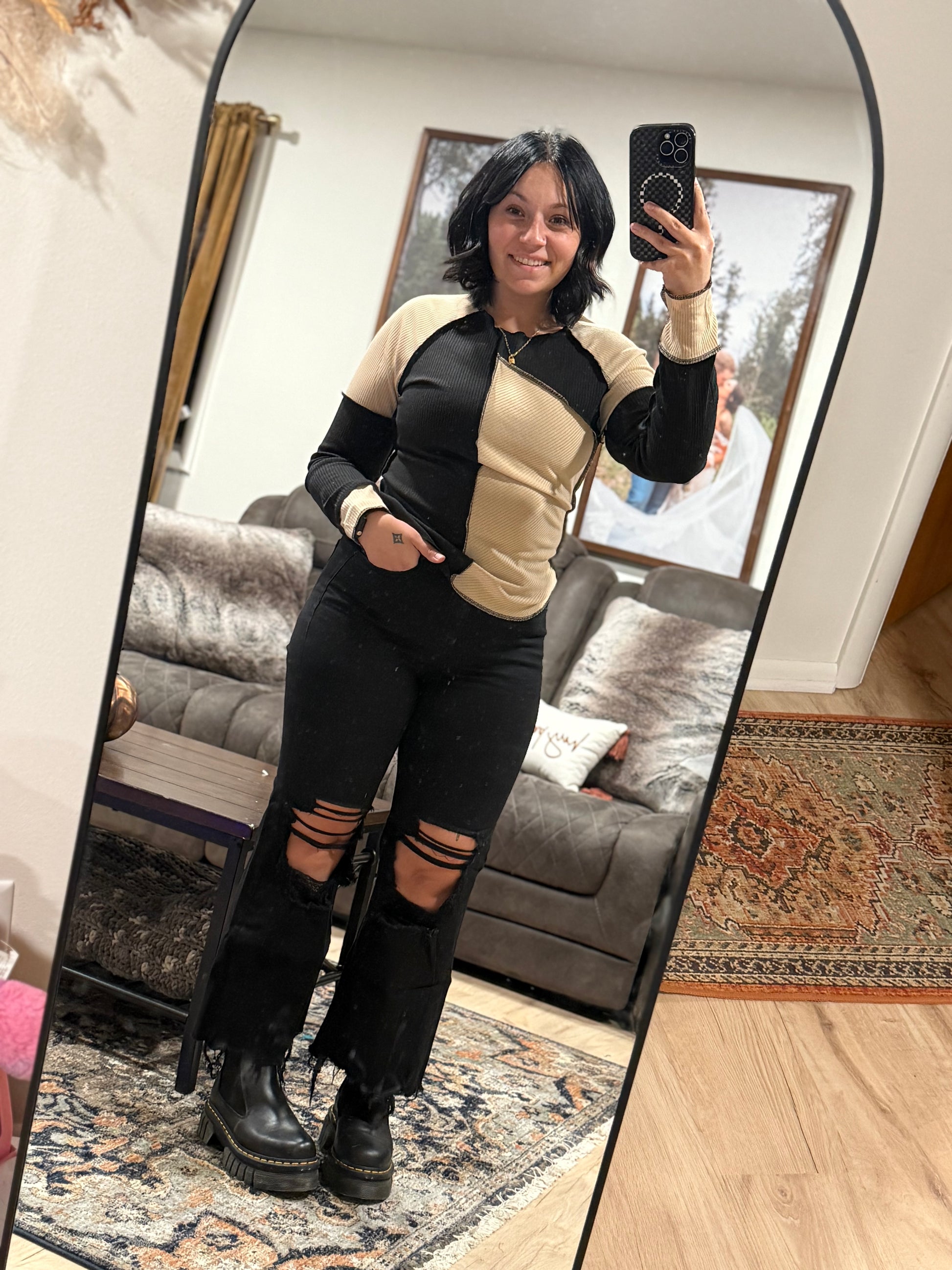 - It is a cute and fashionable daily style with a skinny jeans